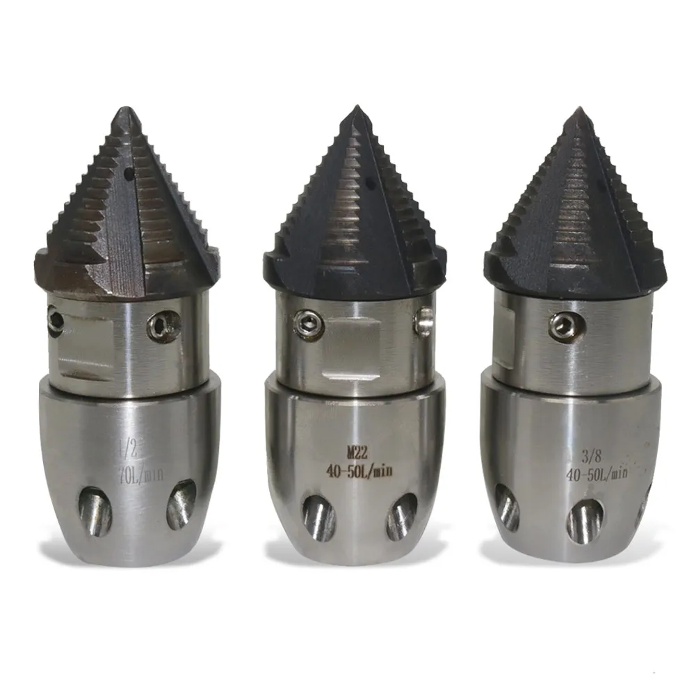 수입한 3/8인치 노즐입니다 이탈리아제 35마력 뱅가드 엔진으로 약200bar의 압력으로 분당 50리터를 360도 회전하면서 강하게 분사합니다 그렇게 강한 물줄기를 뿜으며 노즐을 밖으로 당겨서 빼면서 하수구를...