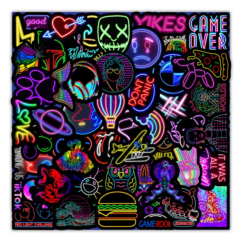 만화 네온 라이트 그래피티 스티커, 자동차 기타 오토바이 수하물 가방, DIY 클래식 장난감 데칼 스티커, 어린이용 F3, 10 개, 30 개, 50 개 구경하러가기