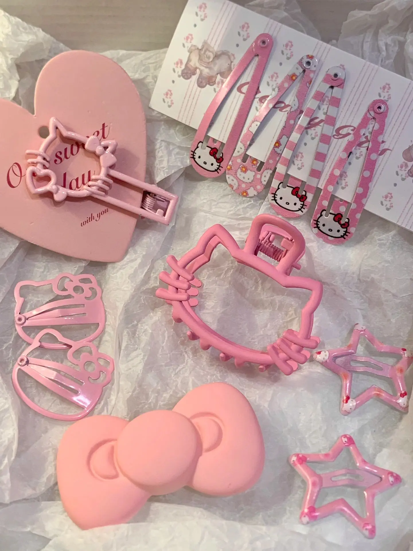 귀여운 헬로 키티 핑크 Bb 클립 컬렉션, 마이 멜로디, 귀여운 소녀 모양 머리핀, 패션 헤어 액세서리, 어린이 선물 [1,7…