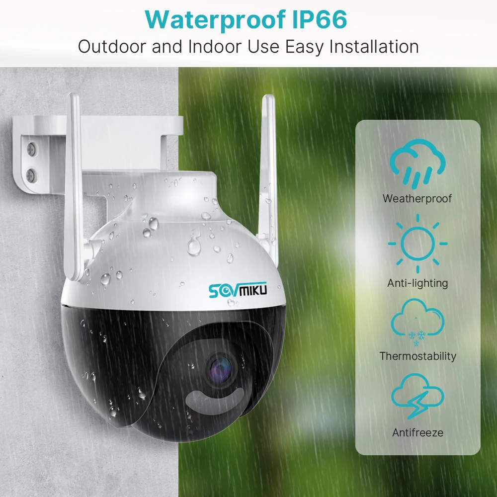 SOVMIKU 스마트 와이파이 PTZ 카메라, 홈 보안 보호, 5 배 디지털 줌, AI 인간 감지, ONVIF 무선 CCTV …