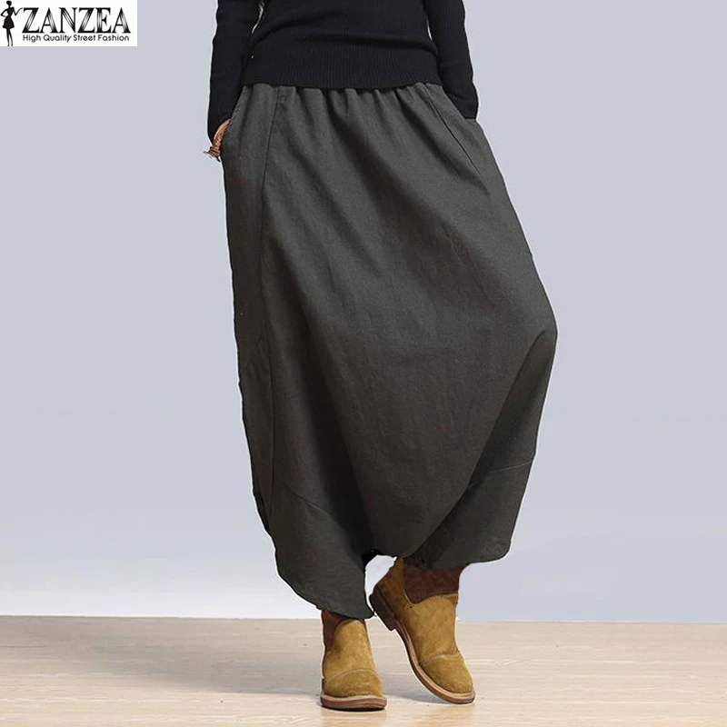 우아한 높은 허리 캐주얼 하렘 바지 사무실 포켓 느슨한 바지 플러스 크기 6XL 여성... 40 Zanzea 여성 긴 바지 숙녀 캐주얼 drawstring 탄성 허리 롱 바지 루스 포켓 pantalones streetwear...