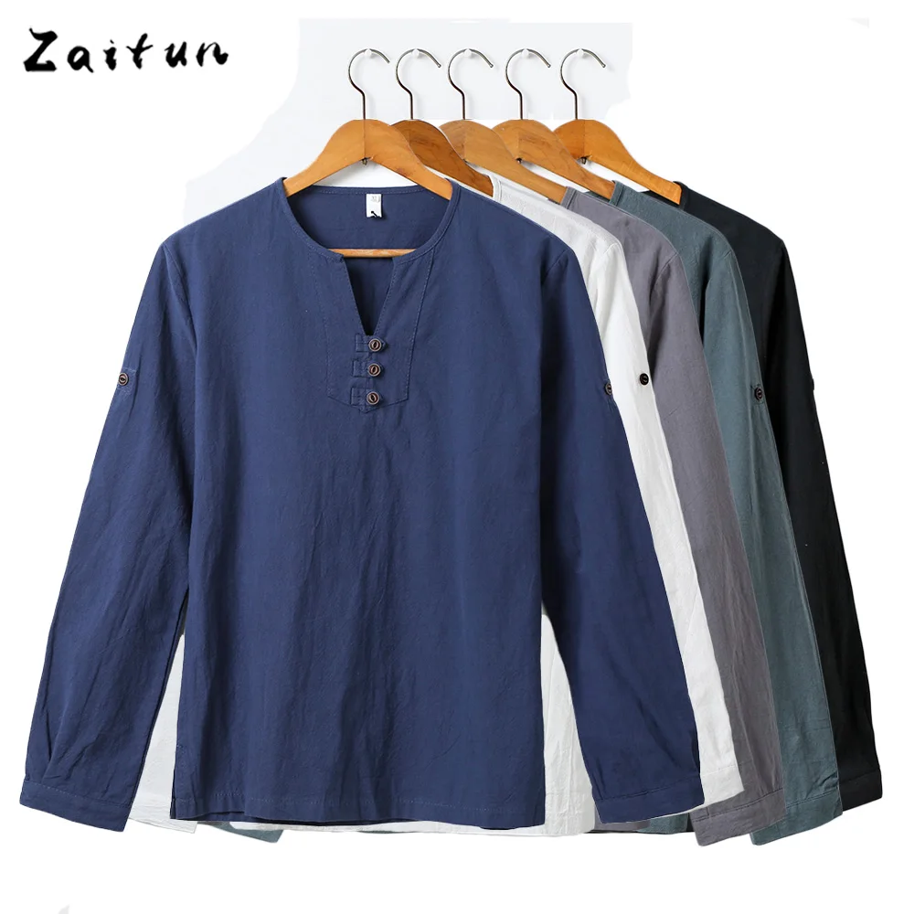 [AliExpress] ZAITUN 플러스 사이즈 롤업 긴 소매 린넨 셔츠 남성 전통적인 중국 린넨 셔츠 V 넥 얇은 캐주얼 …