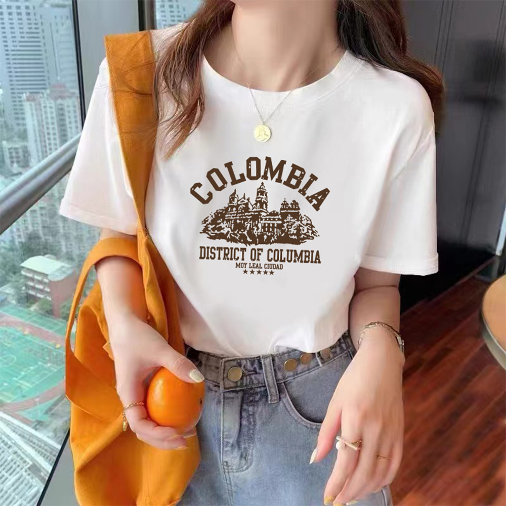 엘쏘 여성용 통기성 라운드넥 로고 화이트 티셔츠