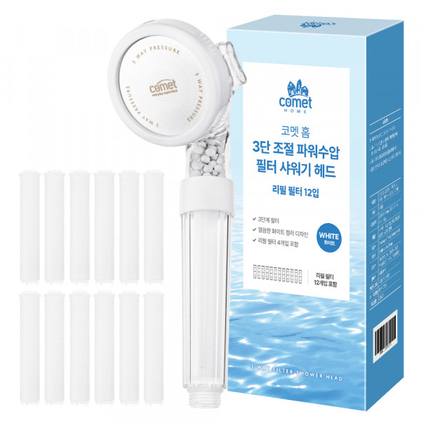 코멧 홈 3단 조절 파워수압 필터 샤워기 헤드 + 리필 12p 세트