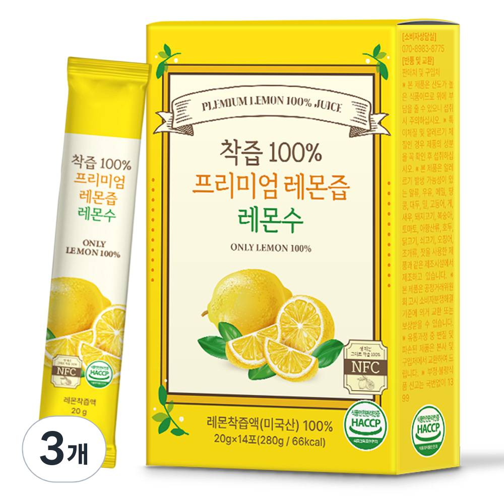 착즙 100% 프리미엄 레몬즙 레몬수, 280g, 3개[17,900원]