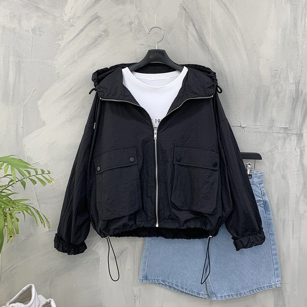 #허리스트링 #후드 #집업 #여성 #자켓 #봄 #가을 #바람막이 #캐주얼 #포켓 #블랙 #사파리 #야상 간절기에 툭 걸쳐도 멋스러운 후드 집업 바람막이 자켓입니다....