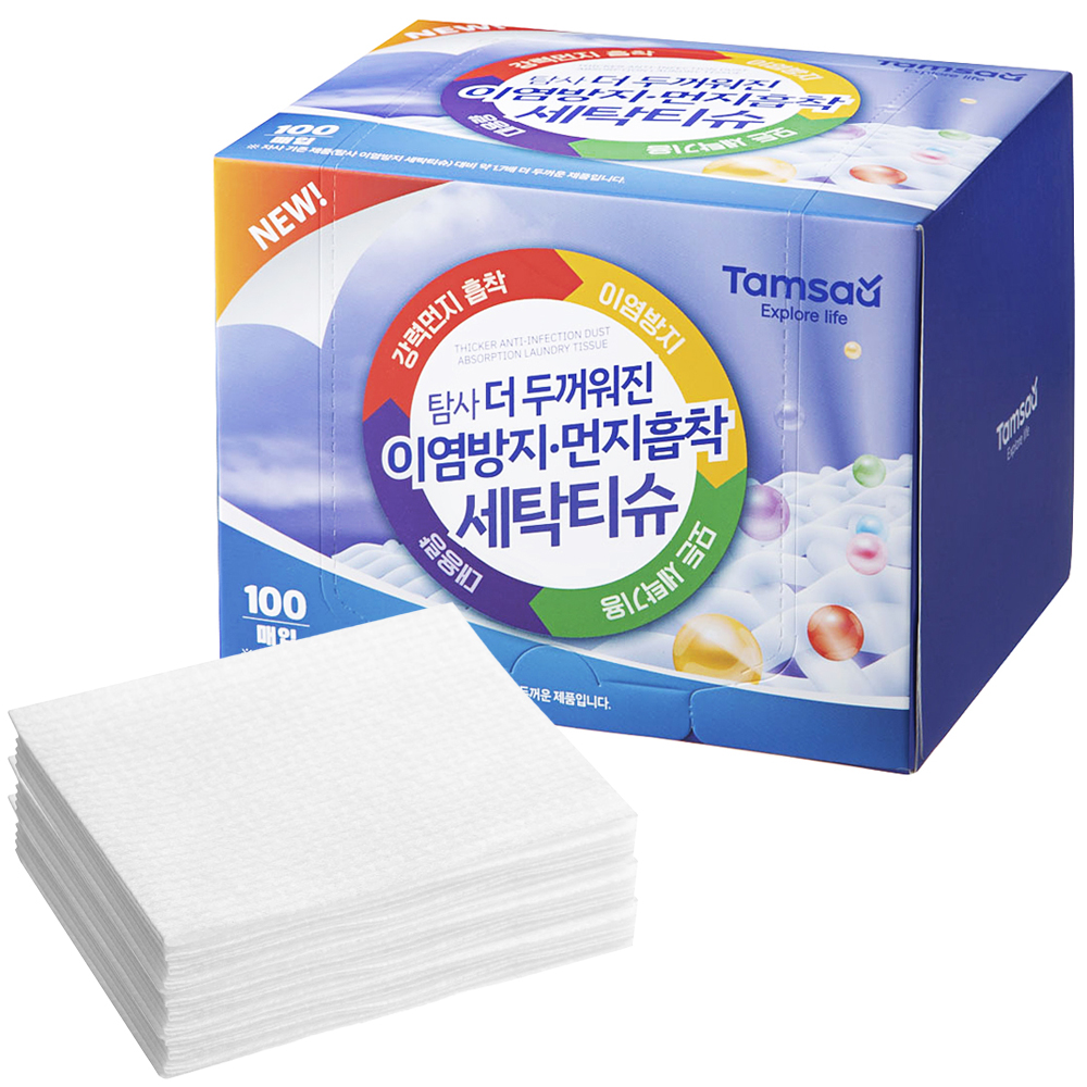 탐사 더 두꺼워진 이염방지 먼지흡착 세탁티슈, 1개, 100개입[7,390원]