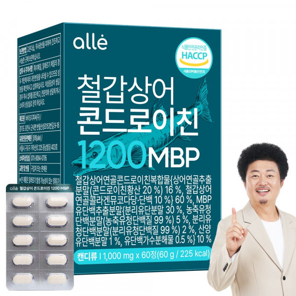 철갑상어 연골 콘드로이친 1200 MBP 식약청 HACCP 알레, 2개, 60정 철갑상어 연골 콘드로이친 1.... 제품은 1200 MBP의 고농축 연골 성분과 콘드로이친이 함유되어 있어 효과가 뛰어납니다 게다가 식약처...