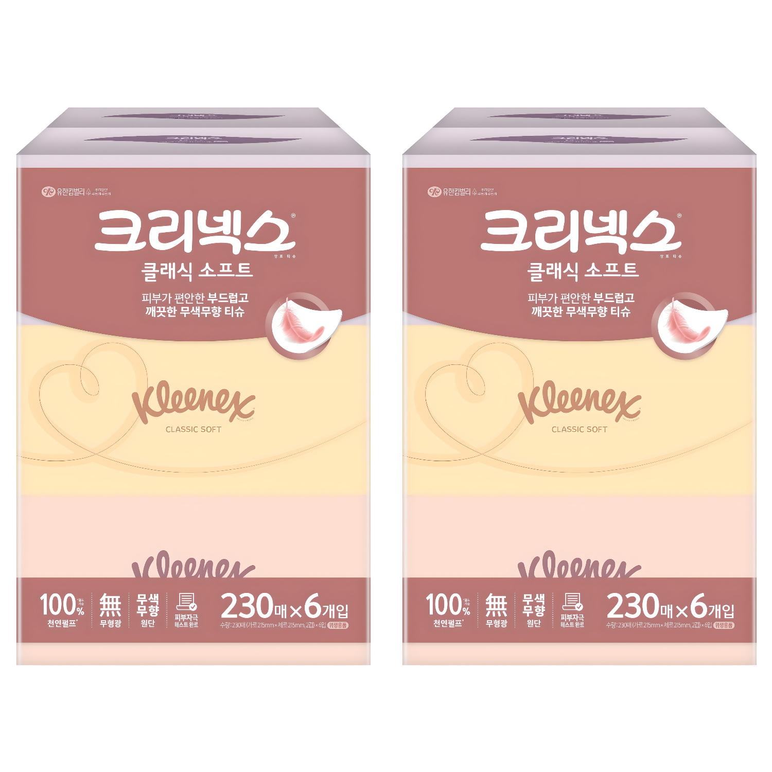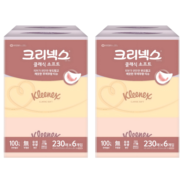 크리넥스 클래식 소프트 천연펄프 미용티슈 2겹, 230매, 12개 https://link.inpock.co.kr/hosgirl 하루에도 수십 번 손이 닿는 티슈, 그래서 가장 순하고 안전한 것만 고르세요. 크리넥스 클래식 소프트는 100...