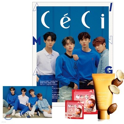 CECI 쎄씨 A형 -1.워너원 황민현, 박우진, 배진영, 이대휘 스페셜 양면 브로마이드 2.'지관통' 3. 클라란스 마스크 15ml & 여행용 2종 샘플 교환권 - 부록 이미지는 정품 이미지 컷으로, 실제...